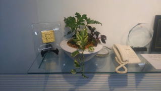 小鉢を並べて、オフィススペースの仕切りに利用したり、受付スペースに小鉢(写真:小鉢3点寄せ鉢)を置いて
